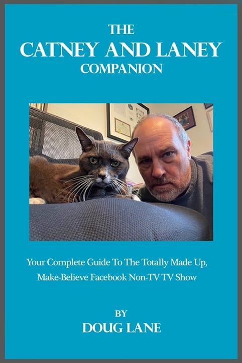 THE CATNEY AND LANEY COMPANION is your complete guide to this weird, wonderful nonexistent TV series of the mind built on the backs of photos of a guy and a cat. It charmed dozens of viewers, was saved by a letter-writing campaign, and featured a who's who of guest stars that no actual budget could have ever pulled off.