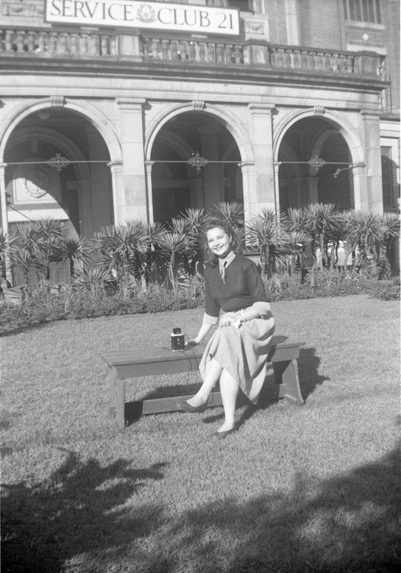 Elaine outside Service Club 21,
