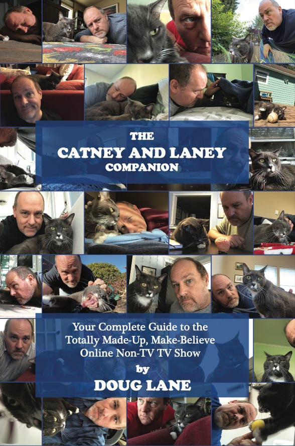 THE CATNEY AND LANEY COMPANION is your complete guide to this weird, wonderful nonexistent TV series of the mind built on the backs of photos of a guy and a cat. It charmed dozens of viewers, was saved by a letter-writing campaign, and featured a who's who of guest stars that no actual budget could have ever pulled off.